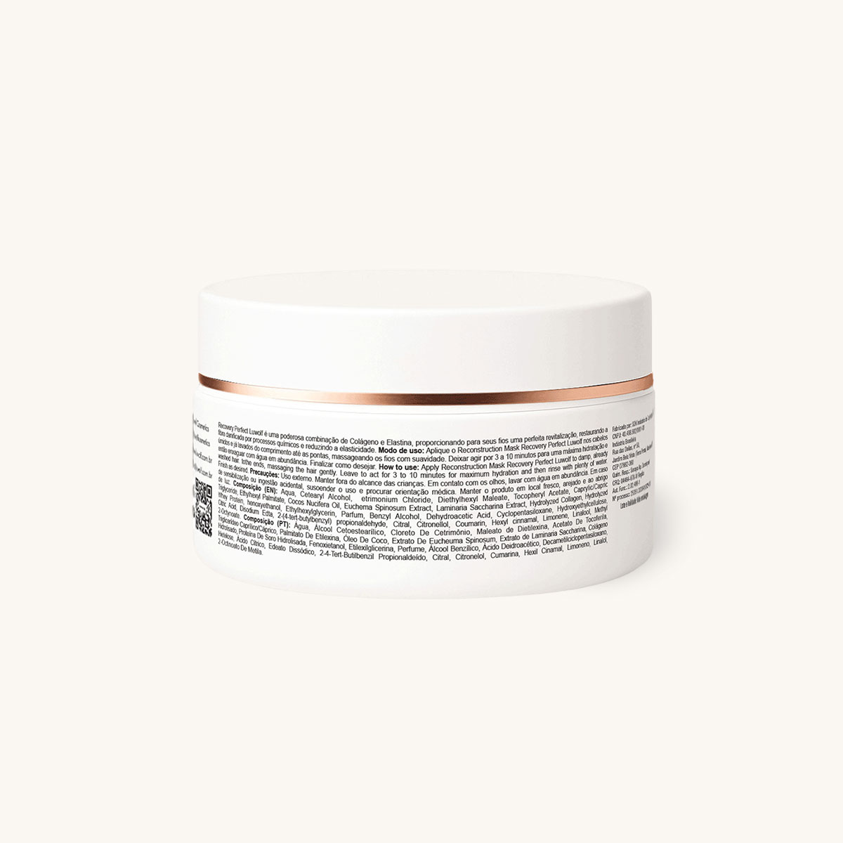 Recupere a força e a beleza dos seus fios com a Máscara Recovery Perfect da Luwolf, uma fórmula de alta performance criada para tratar profundamente cabelos danificados, quebradiços ou quimicamente transformados. Com textura cremosa e toque sofisticado, ela é o passo essencial para quem deseja restaurar a saúde capilar com resultado de salão.